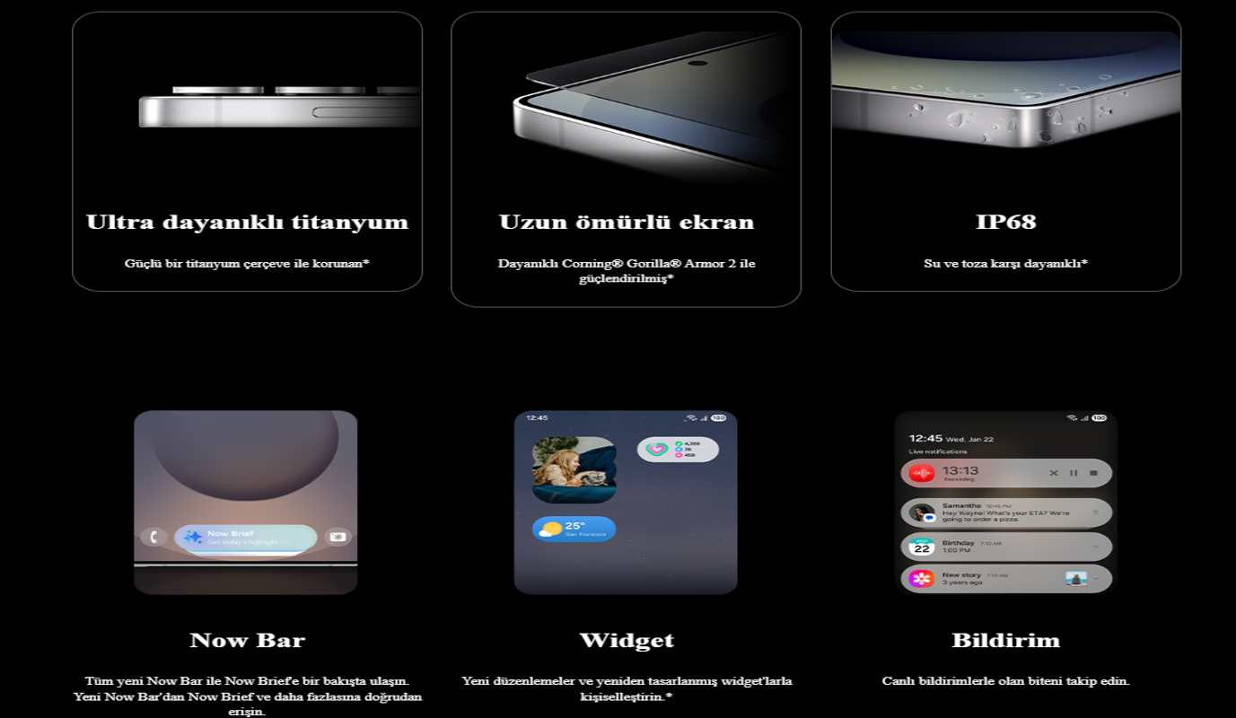 Samsung Galaxy S25 Ultra, yeni nesil amiral gemisi işlemcisi sayesinde yüksek hız, stabilite ve enerji verimliliğini bir arada sunar. Oyun, video düzenleme ve çoklu görev performansında akıcı bir deneyim sağlar. Geniş RAM ve yüksek depolama kapasitesiyle uzun yıllar sorunsuz kullanım hedefler.